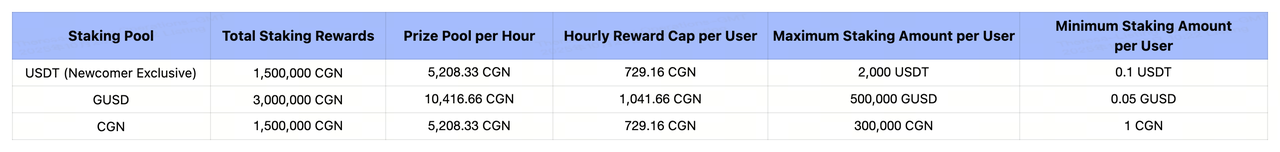 Как принять участие: Войдите в свою учетную запись Gate и пройдите проверку личности — Перейдите в [Launchpool] — Удерживайте на счету не менее 0,1 USDT / 0,05 GUSD / 1 CGN — Нажмите [Участвовать].