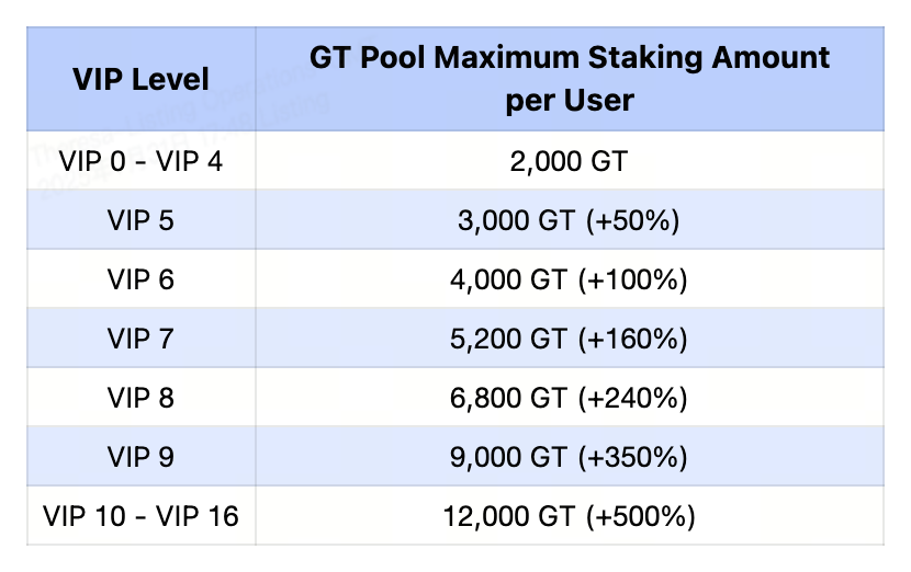 VIP 5 and above users enjoy exclusive staking limits when participating in Launchpool, with up to 500% staking limit bonus.