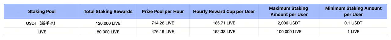 How to Participate: Log in to your Gate account and complete Identity Verification - Navigate to [Launchpool] - Hold at least 0.1 USDT / 1 LIVE - Click [Stake].