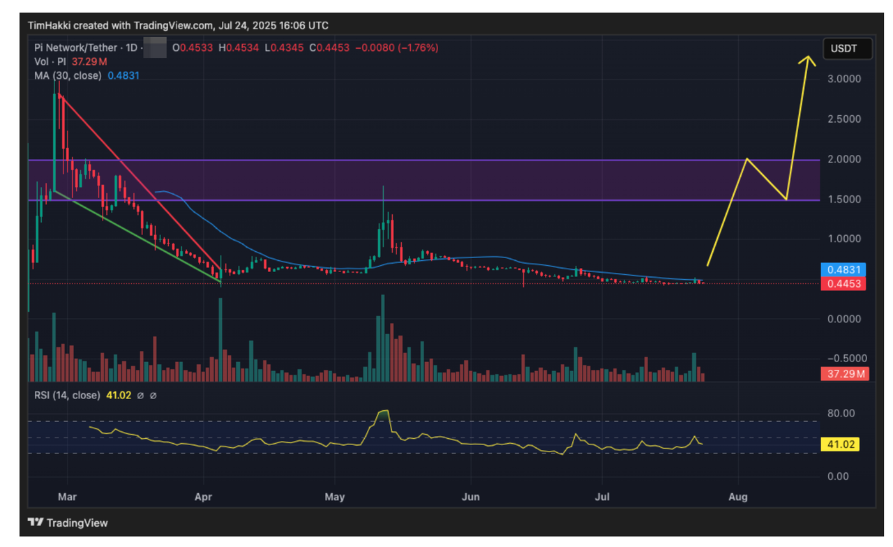 RSI для PI наразі знаходиться на рівні 41 і перебуває в тенденції до зниження, більш широке розпродаж може призвести до незначного зниження його ціни в короткостроковій перспективі. Однак, як тільки його RSI досягне рівня перепроданості 30, інвестори, ймовірно, почнуть купувати на зниженні, щоб скористатися можливістю знижки на цей проект з потужними основами. Якщо PI приєднається до неминучого відновлення крипторинку, його ціна може подолати рівень опору 3 долари пізніше цього літа, і навіть, можливо, перевищити історичний максимум 2.99 доларів у лютому, встановивши новий рекорд.