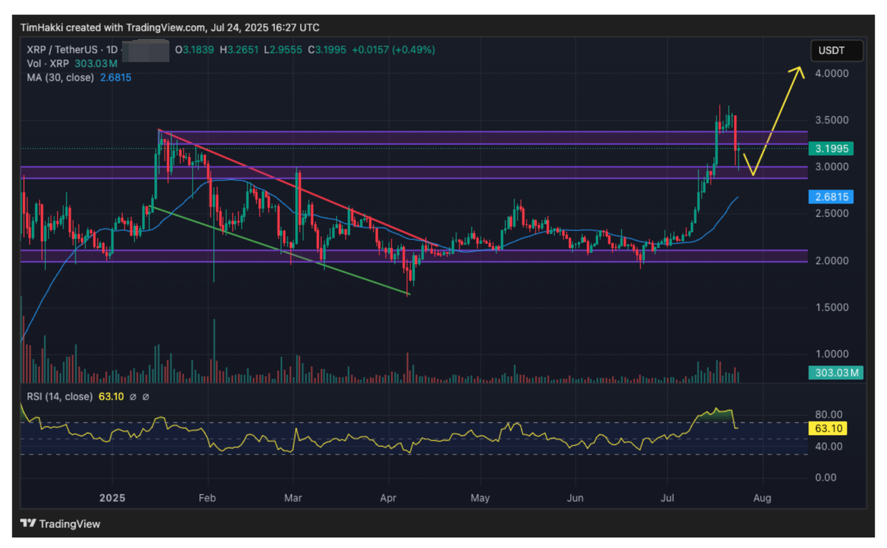 Цей прогноз зростання базується на сильних показниках XRP цього року. 18 липня XRP досяг історичного максимуму (ATH) у 3,65 долара, перевершивши свій піковий рівень 2018 року в 3,40 долара, що демонструє стійку висхідну динаміку. Протягом останніх двох тижнів його зростання склало 32%, що перевищує показники біткойна та інших криптовалют, згаданих у цій статті.