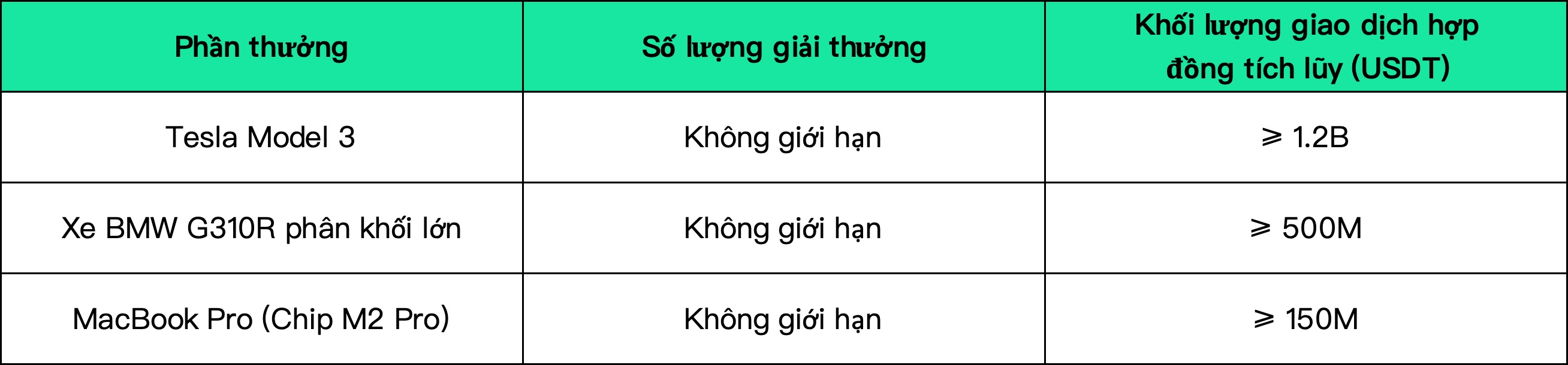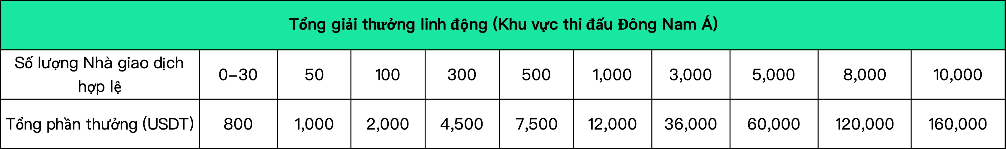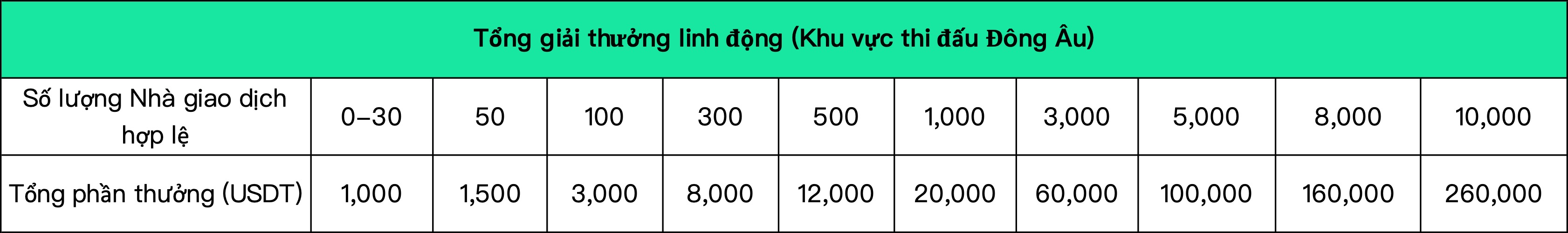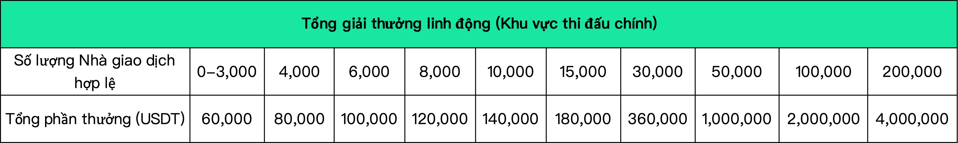 17.Tổng giải thưởng cuối cùng của sự kiện được xác định bởi số lượng nhà giao dịch hợp lệ trong hợp đồng và giao ngay. Số lượng nhà giao dịch hợp lệ = số người đăng ký tham gia sự kiện - số người dùng chưa mở vị thế trong suốt cuộc thi - số lượng người dùng gian lận được phát hiện bởi hệ thống kiểm soát rủi ro (bao gồm nhưng không giới hạn đối với nhóm giải thưởng đăng ký nhiều tài khoản giả, giao dịch theo cặp, tự động giao dịch, v.v.). Người dùng giao dịch giao ngay hợp lệ là người dùng đã đăng ký thành công cuộc thi và có khối lượng giao dịch giao ngay tích lũy trong thời gian diễn ra cuộc thi ≥ 10.000 USDT.