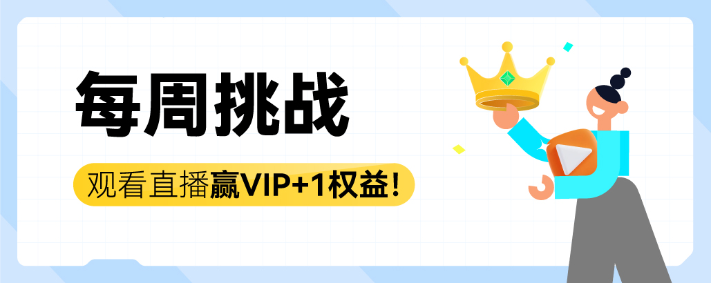 参与GateLive每周挑战,观看直播,赢取VIP+1奖励!