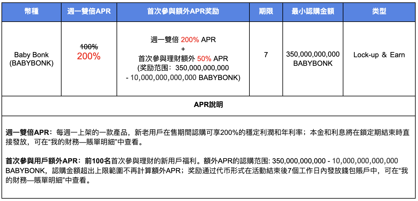 1.完成實名認證的新老用戶均可參加,额外APR獎勵僅對活動期間新注册并首次参与认购的用户生效。