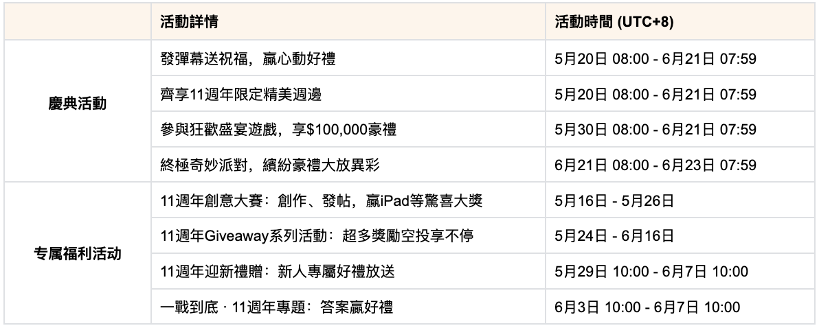 🎊 11週年限定專屬福利: