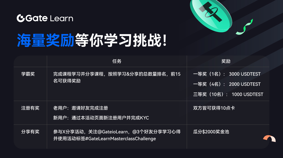 在学习过程中,将学到的知识、观点或者学习心得分享到X(Twitter),并@GateioLearn 和使用特定的活动标签#GateLearnMasterclassChallenge。