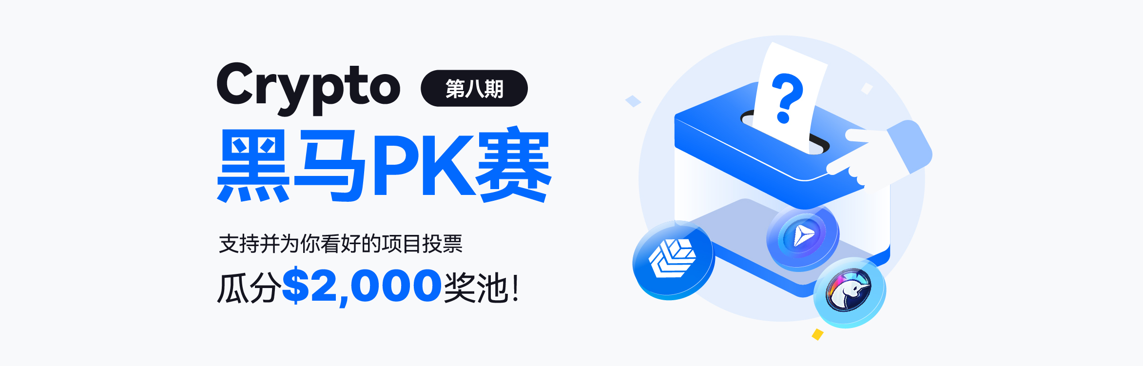 Startup Crypto黑马PK赛第八期正式开启!为你心中的Crypto潜力项目投票,获胜项目的支持者将瓜分$2,000空投代币!