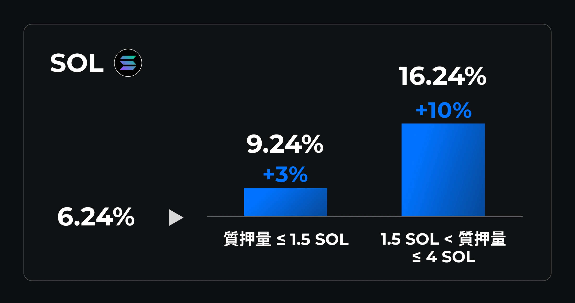 隨著 SOL(Solana)價格突破新高,為滿足用戶投資需求,提升賺幣收益,鏈上賺幣推出了 SOL 特別活動,參與質押即享額外獎勵,質押超 1.5 SOL 享 10% 年化收益,最高參考綜合年化達 16.24%。