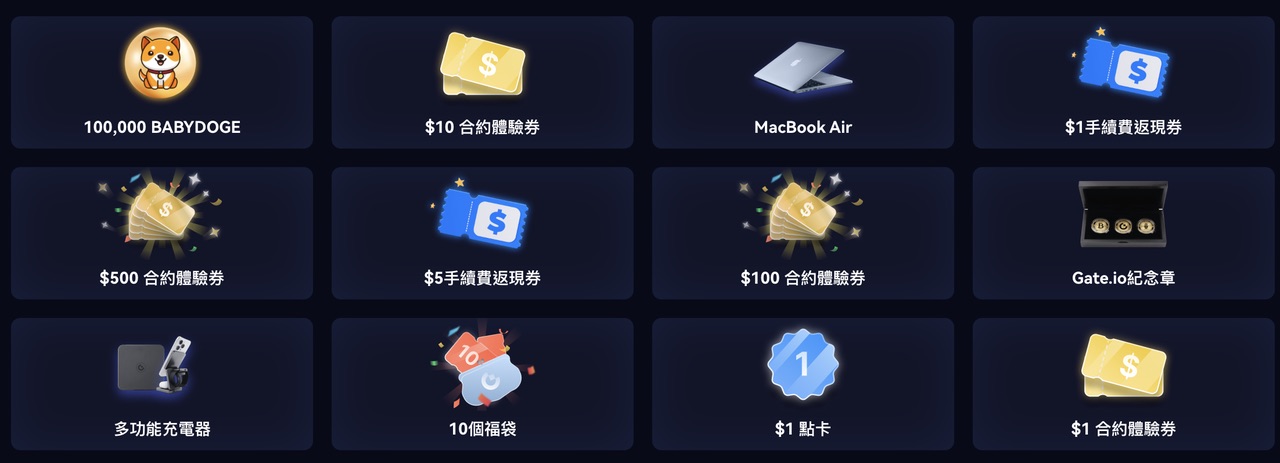 5.合約體驗券、點數卡、代幣、福袋、手續費返現券等獎勵將會在活動結束後的30個工作天內完成發放,請及時查收您的帳戶。