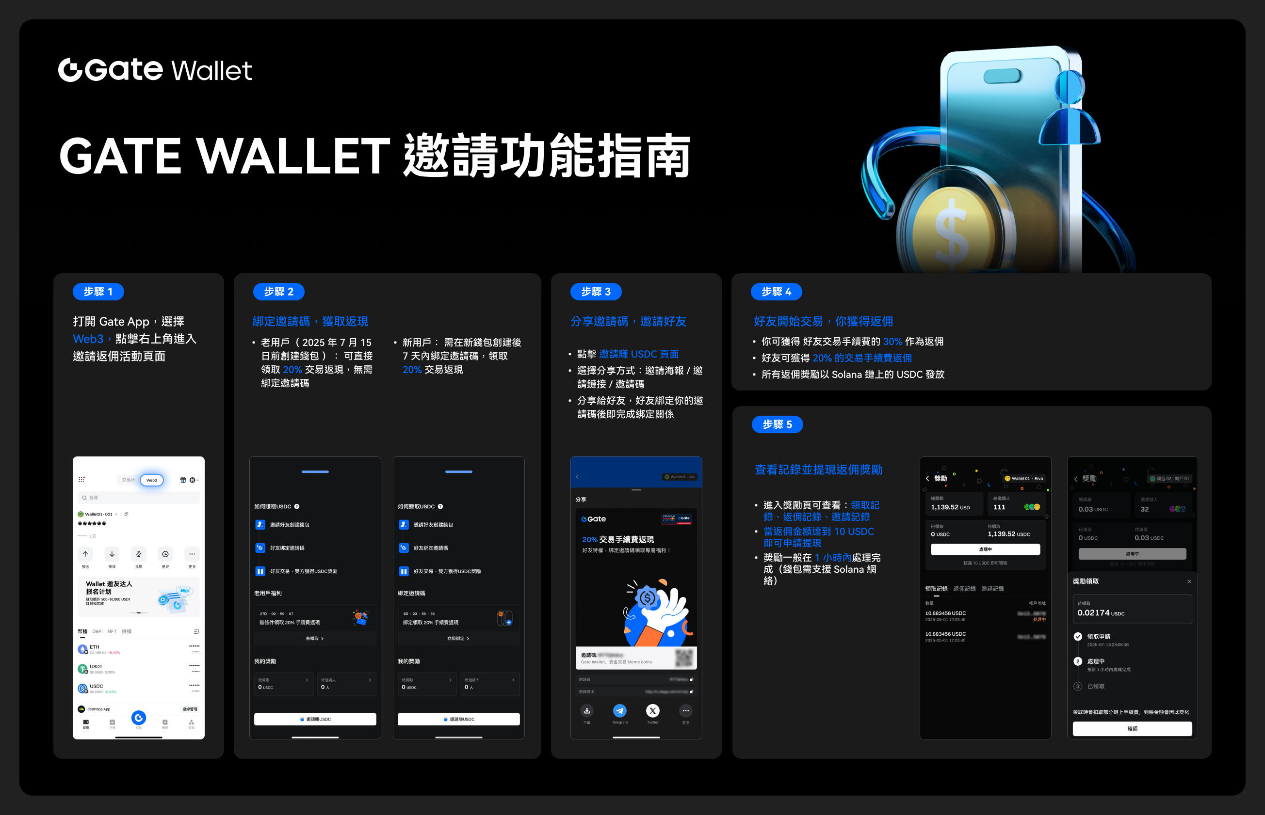 Gate Wallet 推出老用戶邀請好友特別福利,限時領 20% 交易手續費返現。