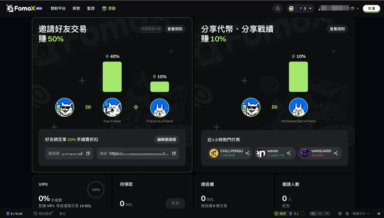 - 分享代幣交易返佣:他人通過你的連結交易,你可獲得 10% 手續費返佣