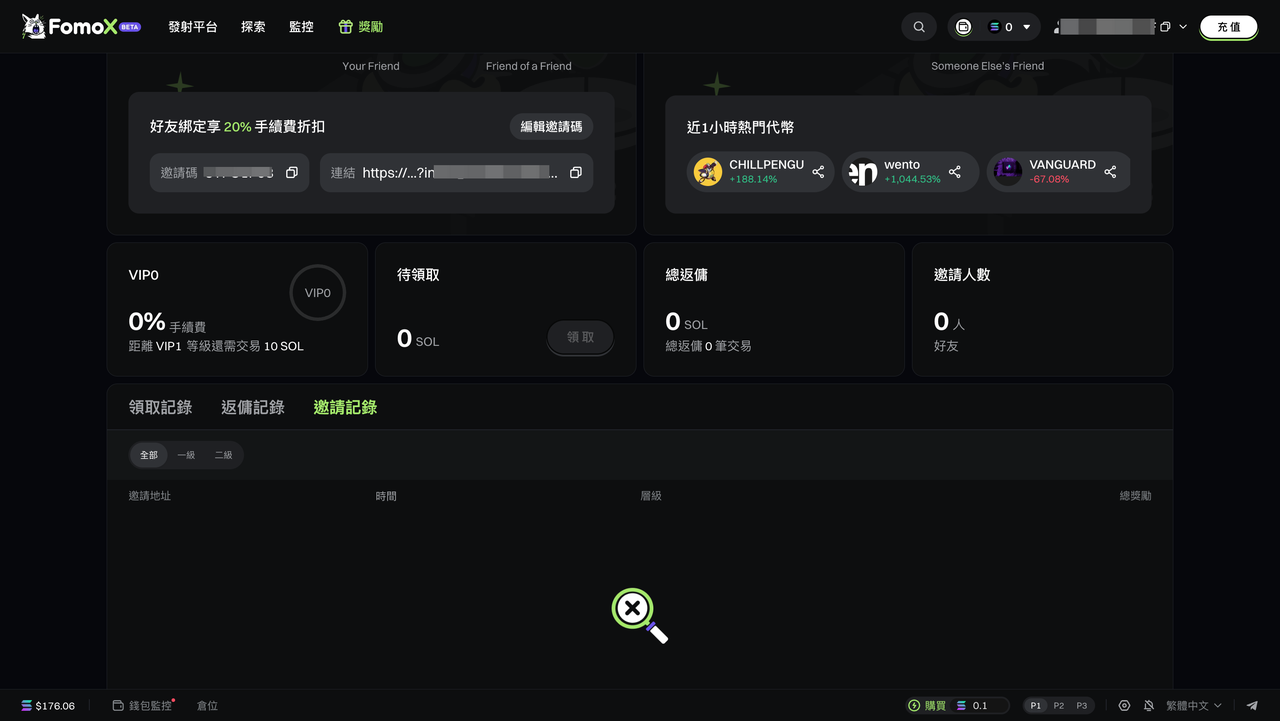 邀請記錄展示: