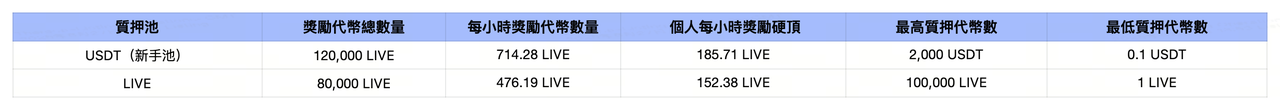 挖礦總量:200,000 LIVE