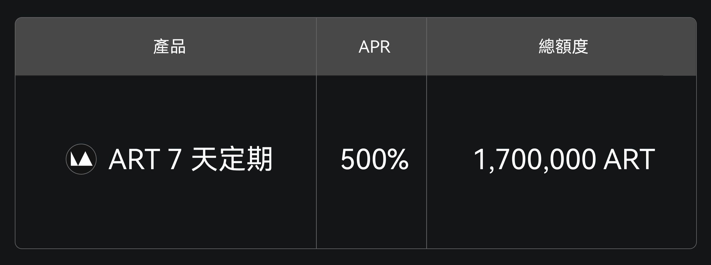 Gate 餘幣寶現已上線 ART 7 天定期理財,年化收益 500%,總額度 1,700,000 ART,限量發售,先到先得。