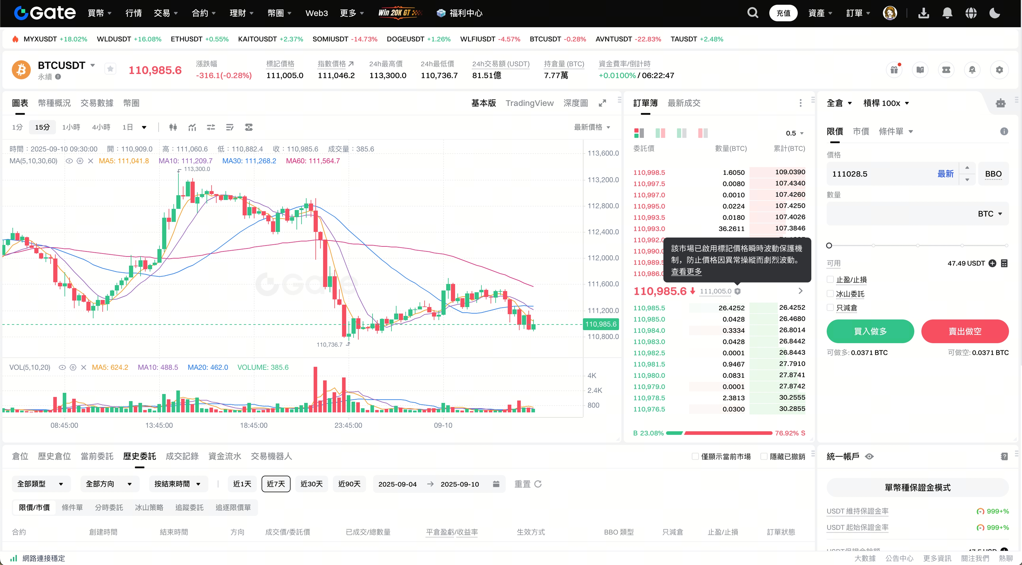 用戶可於交易頁面透過專屬標識,直觀了解該市場是否已啟用標記價格瞬時波動保護機制。