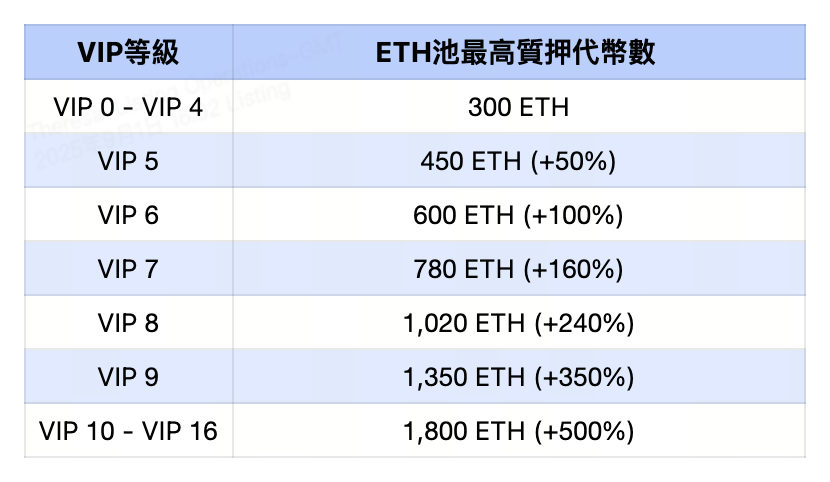 VIP 5 及以上用戶參與 Launchpool 享有專屬質押額度提升權益,最高可享 500% 質押額度加成。