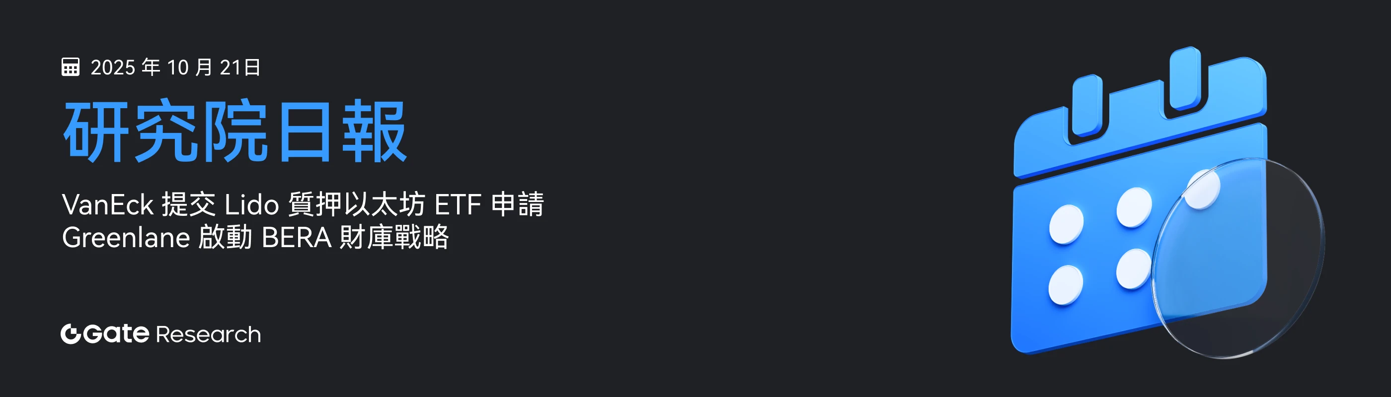 探索本日詳情 → Gate 研究院:VanEck 提交 Lido 質押以太坊 ETF 申請|Greenlane 啟動 BERA 財庫戰略