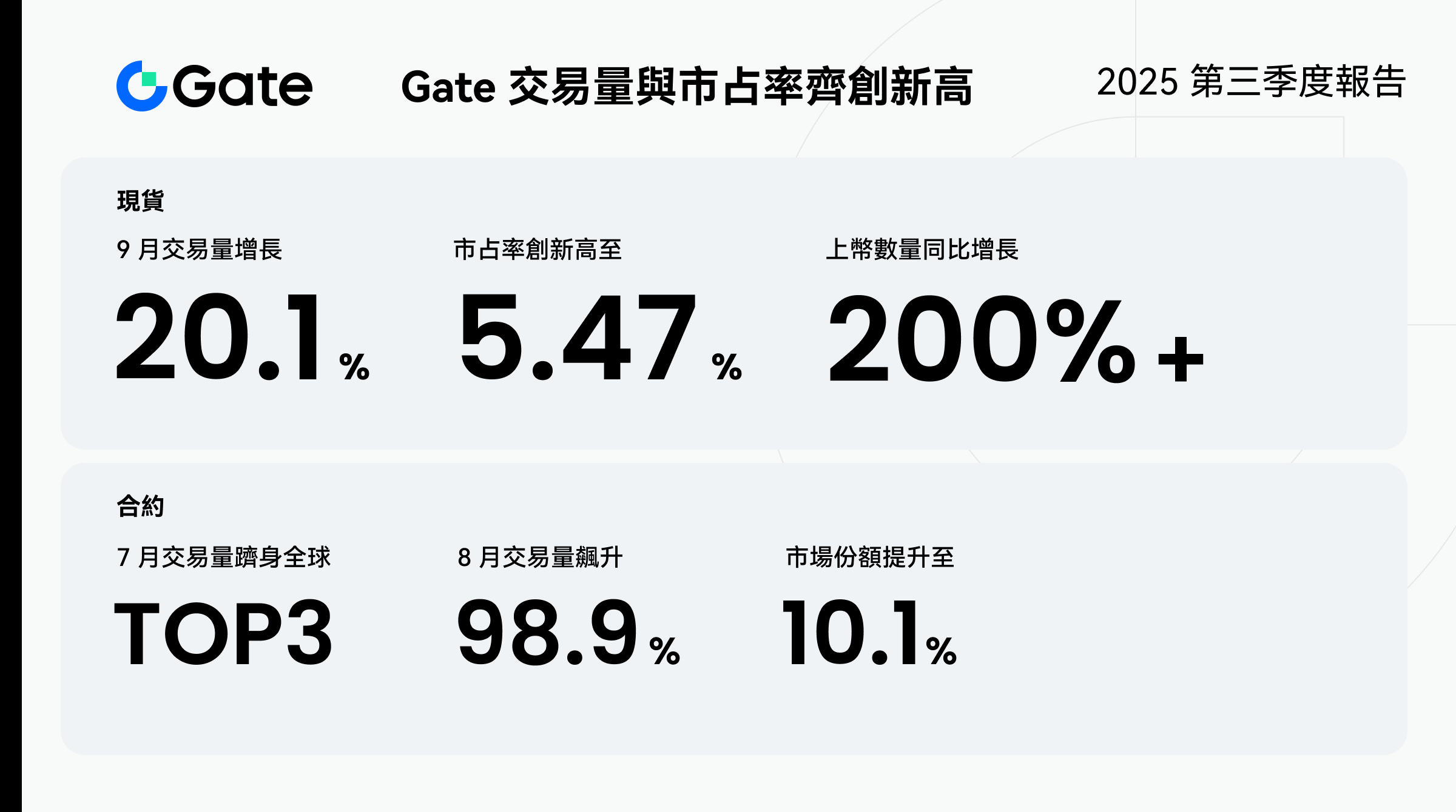 本報告將從業務表現、生態建設、安全合規、社區與品牌建設等多維度梳理 Gate 第三季度運營成果,全面展示其在交易實力、技術創新、全球戰略及社會影響力上的系統性領先,為長期穩健增長奠定基礎。