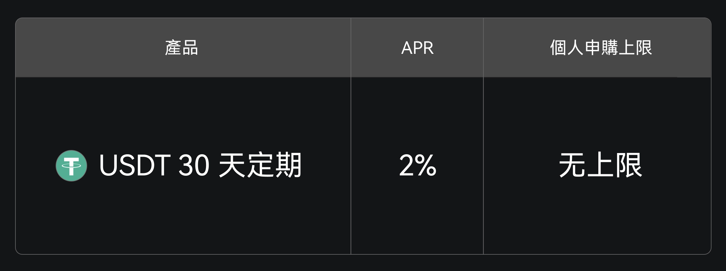 凡參與過 KDK Launchpad 的用戶,申購 USDT 30 天定期理財,即可享 2% 年化收益,無申購上限。前往申購