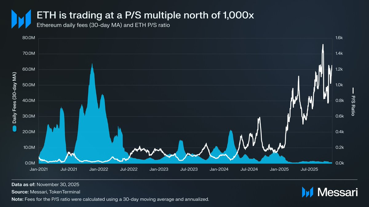 儘管 ETH 反彈強勁,行情最終趨於平穩。至 11 月 30 日,ETH 已自 8 月高點回落至 2,991 美元,遠低於上一輪週期前高 4,878 美元。ETH 當前遠強於 4 月,但這輪反彈並未消除最初引發空頭觀點的結構性問題。實際上,ETH 的爭論愈加激烈。