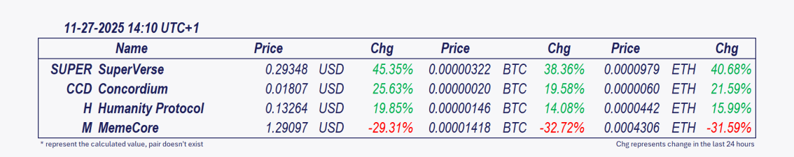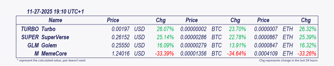 🌙 00:00 CET – 每日總結:每日收盤高於翻轉支撐 – 今日漲幅前列的幣種