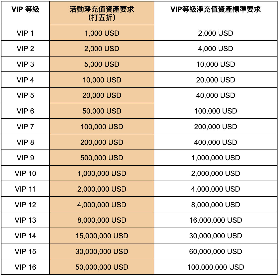 活動結束時參與用戶淨充值達到要求的一半,即可獲得對應VIP等級,享受30天同等VIP待遇 (詳情見下表)。活動期間首次參與Startup認購的100名用戶,還可獲贈一份精美周邊(以下禮包隨機發貨),先到先得!
