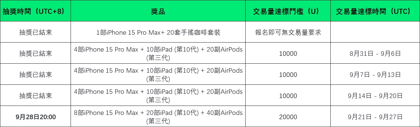 此外,9 月 28 日週四晚 8 點,將繼續舉行直播抽獎活動,以下是詳細時間安排: