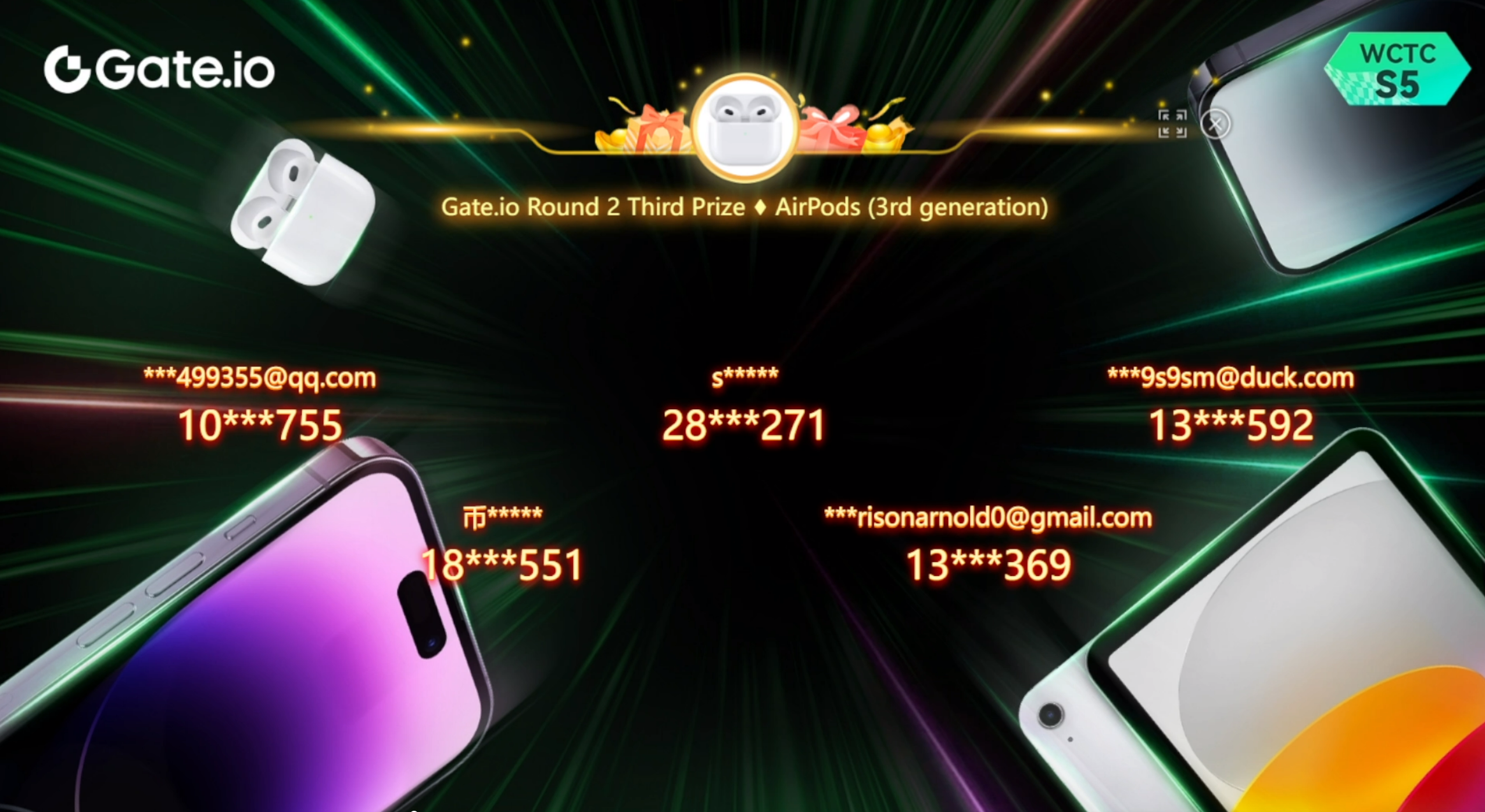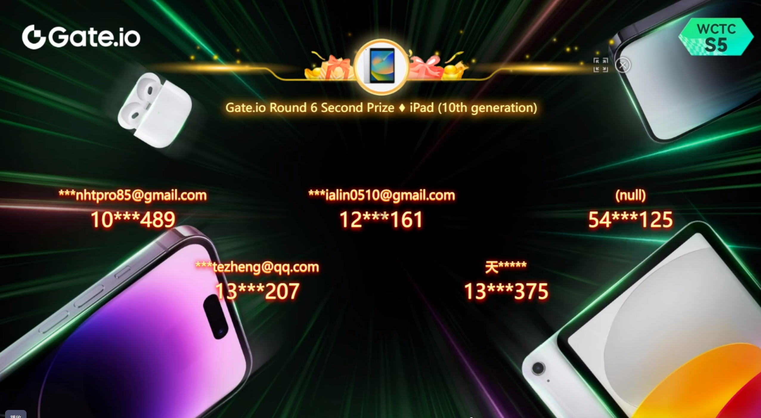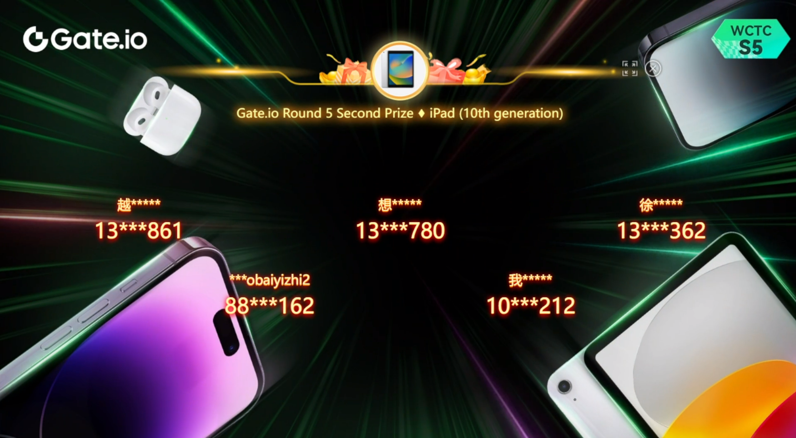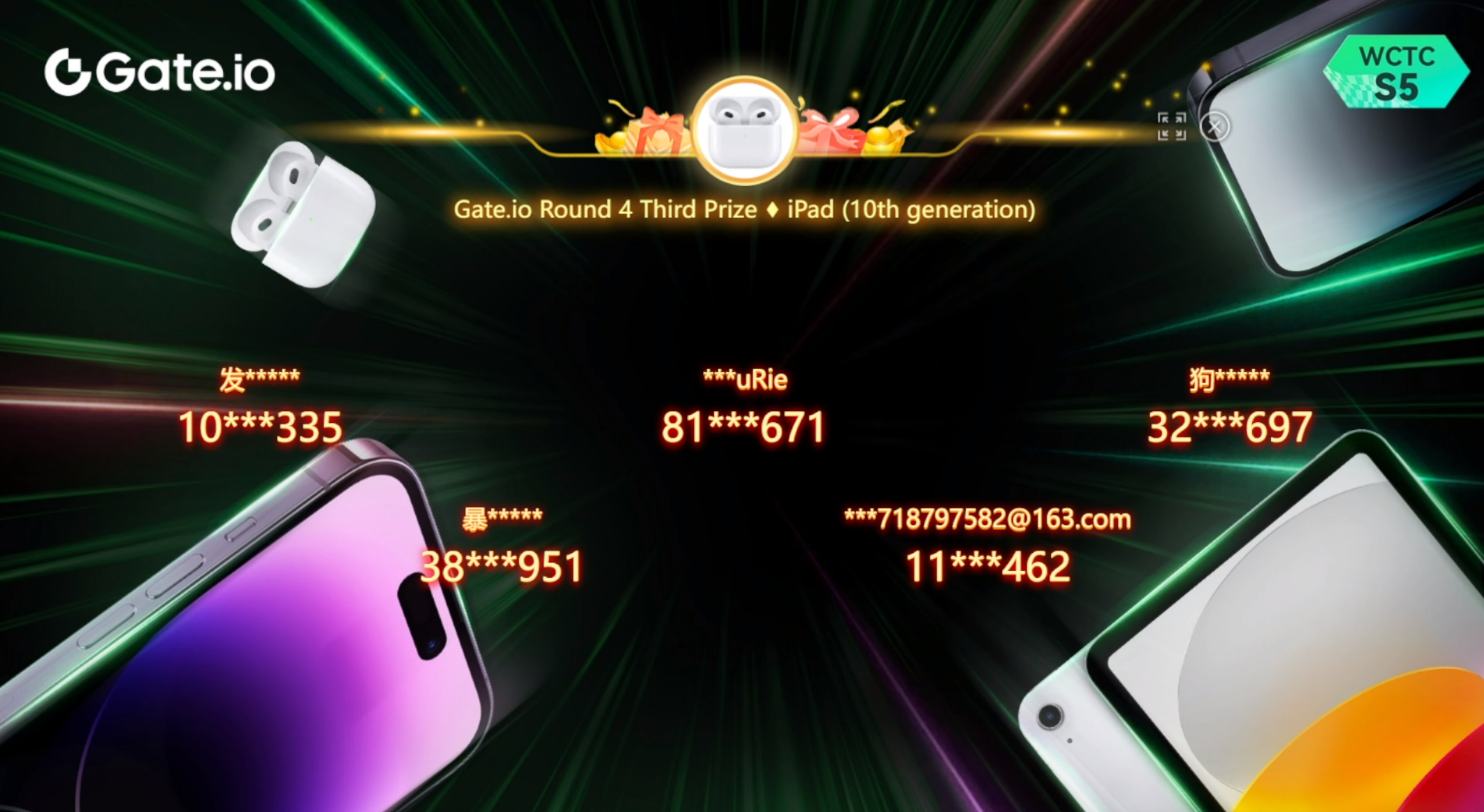 WCTC S5 重磅好禮,抽191件iPhone 15 Pro Max 等豪禮第四場直播抽獎活動已圓滿結束,感謝每一位用戶的關注與參與,同時也感謝特邀嘉賓們為我們帶來精彩的直播內容。經過六輪公開透明直播抽獎,總計20位用戶獲得AirPods (第3代),10位用戶獲得iPad(第10代),4位用戶獲得iPhone 15 Pro Max,在此恭喜獲得獎勵的幸運兒!