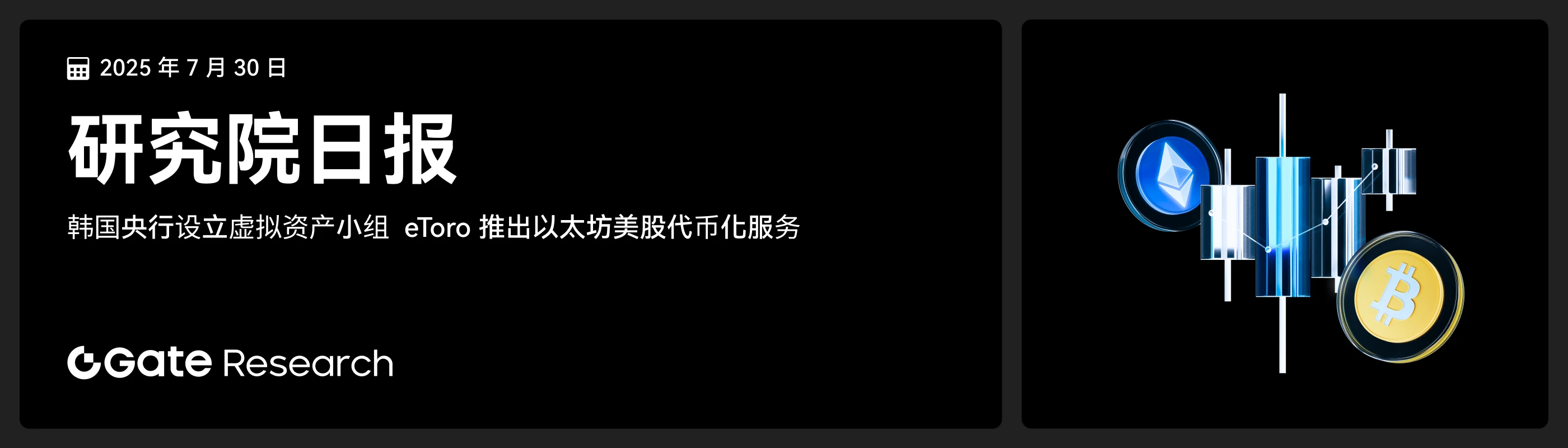 探索本日详情 → Gate 研究院:韩国央行设立虚拟资产小组|eToro 推出以太坊美股代币化服务