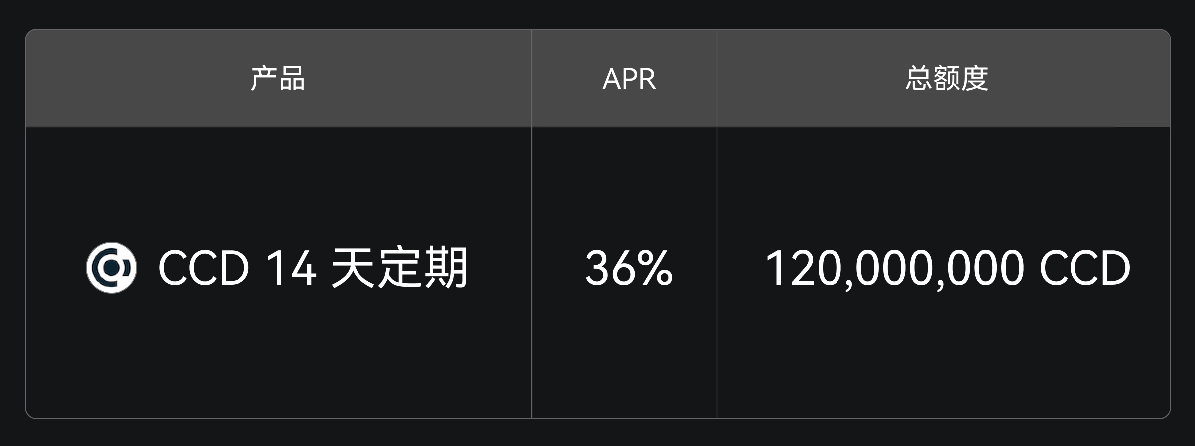 Gate 余币宝限时推出 CCD 14 天定期理财,年化收益 36%,总额度 120,000,000 CCD,数量有限,售完即止。