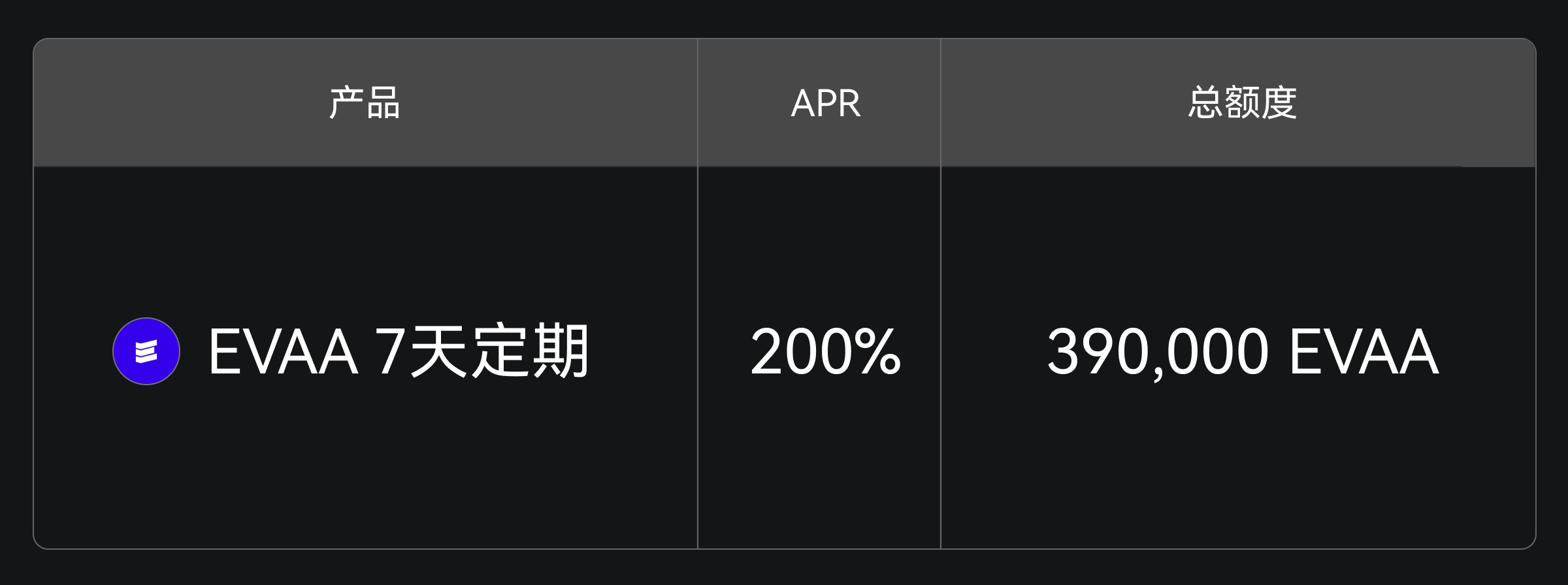 Gate 余币宝限时推出 EVAA 7 天定期理财,年化收益 200%,总额度 390,000 EVAA,数量有限,售完即止。