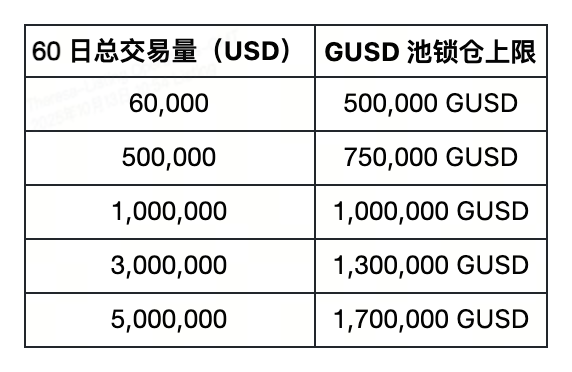 将根据 60 日总交易量确定锁仓上限。达到更高的交易量,即可解锁更高的质押额度。