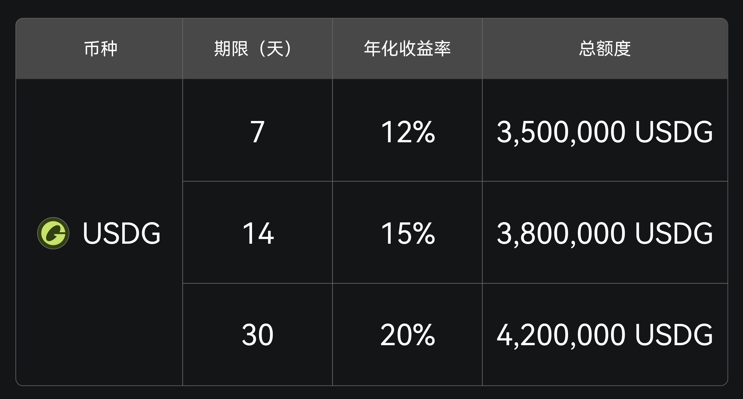 1. 利息将以 USDG 形式发放,用户可通过【历史记录】-【定期】-【利息收益】查看详情;