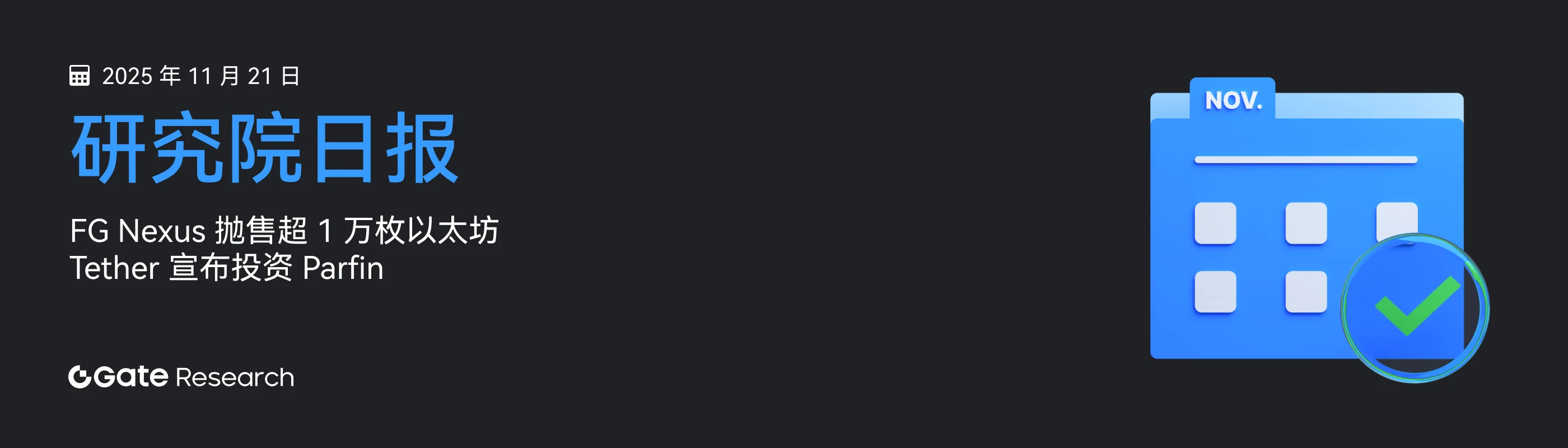 探索本日详情 → Gate 研究院: FG Nexus 抛售超 1 万枚以太坊 | Tether 宣布投资 Parfin