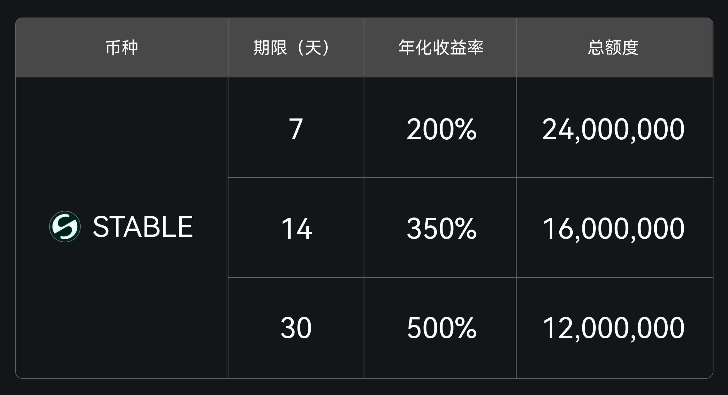 Gate 余币宝现已上线 STABLE 定期理财,提供 7 天、14 天、30 天三种锁仓周期,年化收益率最高可达 500%,最低仅需 100 STABLE 起投,欢迎前往参与申购。