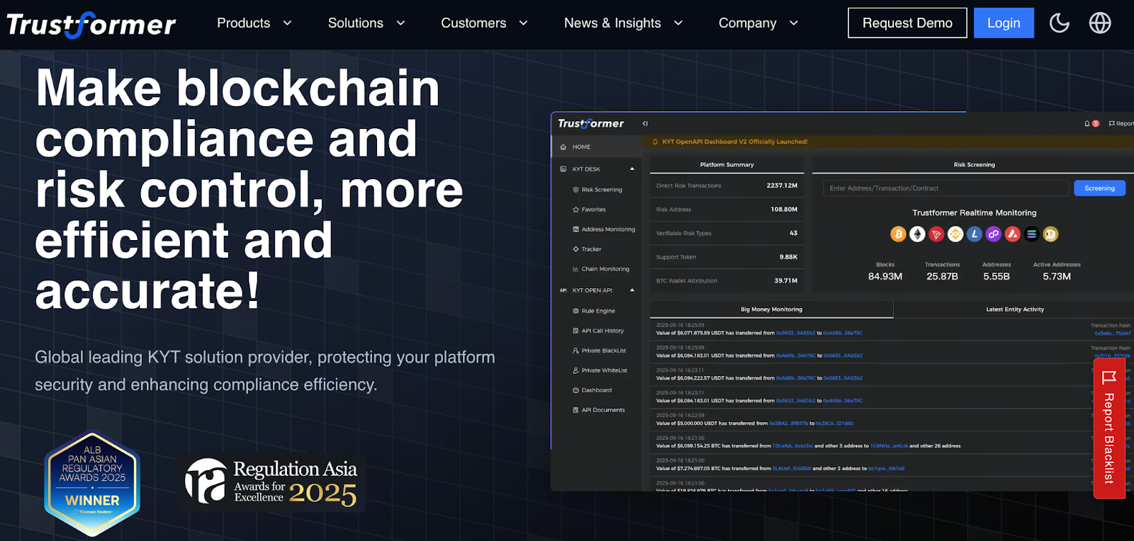 Trustformer结合AI与区块链分析,自动完成交易解析、数据比对、风险标记和制裁筛查等任务,支持机构在快节奏、高交易量环境下实现合规。