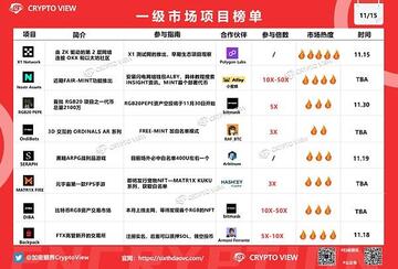 接下来我们看一下今天的主要内容,就是近期热门的一级项目,所谓一级项目就是还没上线的或者发B的项目,那么这种项目大家去获取收益的可能性会更高。下图中的参与倍数是指早期参与可能获得的利润。