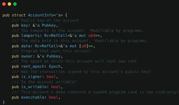 账号的校验就是其中一个严重的安全隐患,智能合约需要非常严谨地设计账号的关联关系,我们看下图的结构,key 指向账号本身,lamports 需要校验租金是否足够,data 要根据特定场景解析出具体的值进行校验,owner 通常与 Program ID 相关联,还有要校验签名、账号是否可写等等。