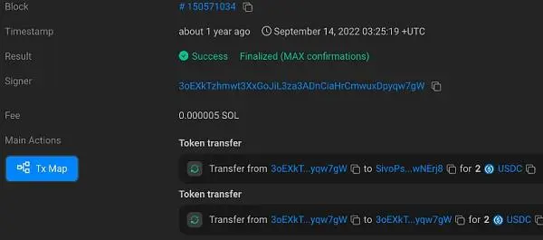 该项目没有开源,只能从浏览器进行分析,我们可以看到黑客从 solend 里借出了大量的 USDC,操控了代币的价格,进而获利 300 多万美元。由此可见,并不是项目不开源就不会被黑客攻击,有经验、有耐心的攻击者还是可以分析出协议中可能存在的安全漏洞,因此开发团队不能有侥幸心理。