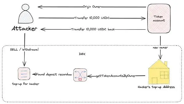 这是一个链下的安全问题,攻击者创建一个 token-account,往这个账号里转移代币,然后转出,最后把这个 token-account 的 owner 转移给交易所的充值地址,交易所在检测 token-account 的链上记录时,会误认为这个账号有真实的充值,于是为这个恶意用户进行充值,导致了攻击的发生。