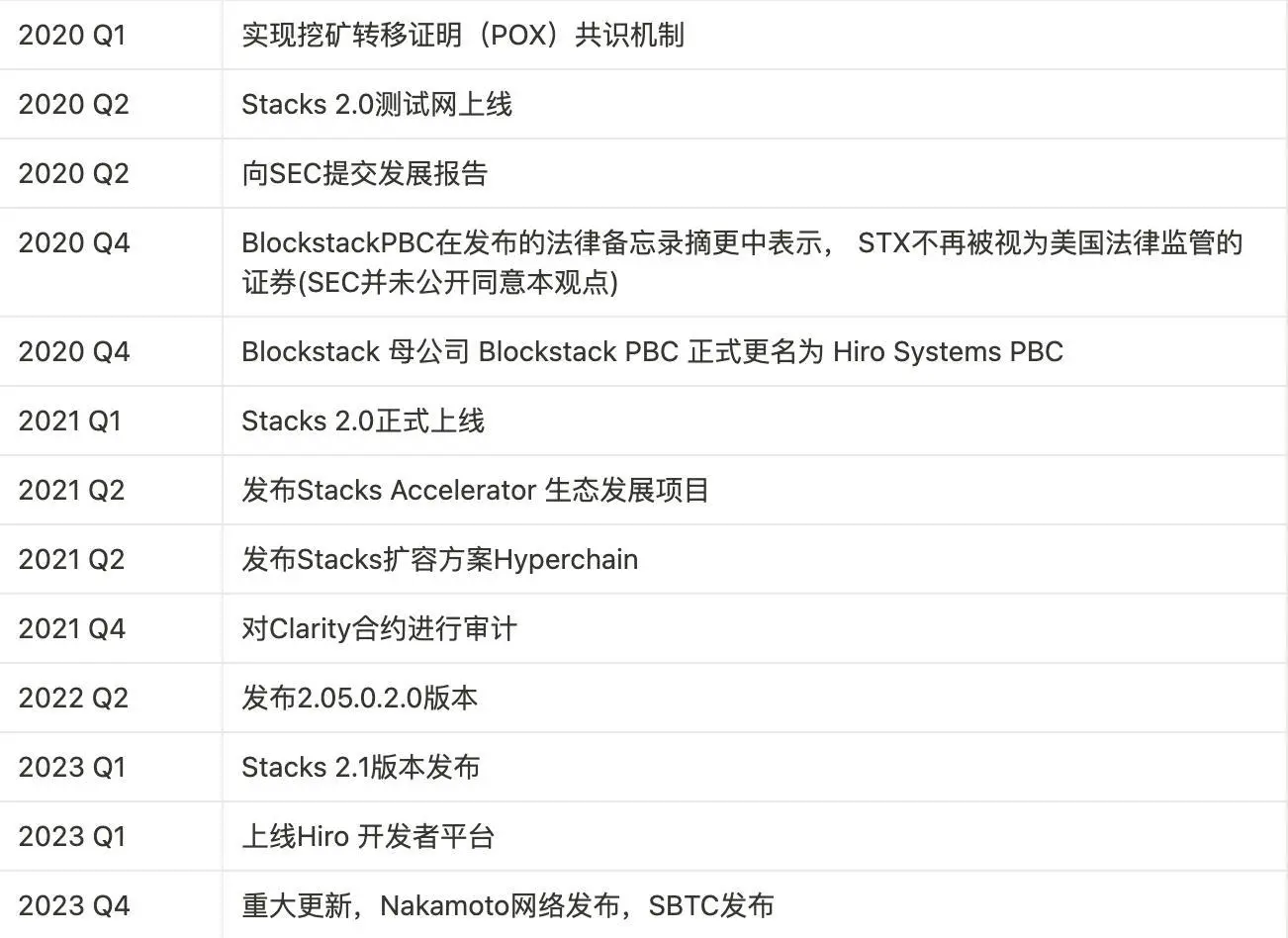 Stacks 已于 2023 年第⼀季度进⾏了最新的 v2.1 ⽹络升级,其中包括了提升堆栈(Stacking)功能、改进 Clarity 编程语⾔、内部区块链升级、增强可靠性等⽅⾯的更新。另外,还上线了 Hiro 开发者平台,使开发⼈员能够通过托管式体验在 Stacks 上构建和部署智能合约。