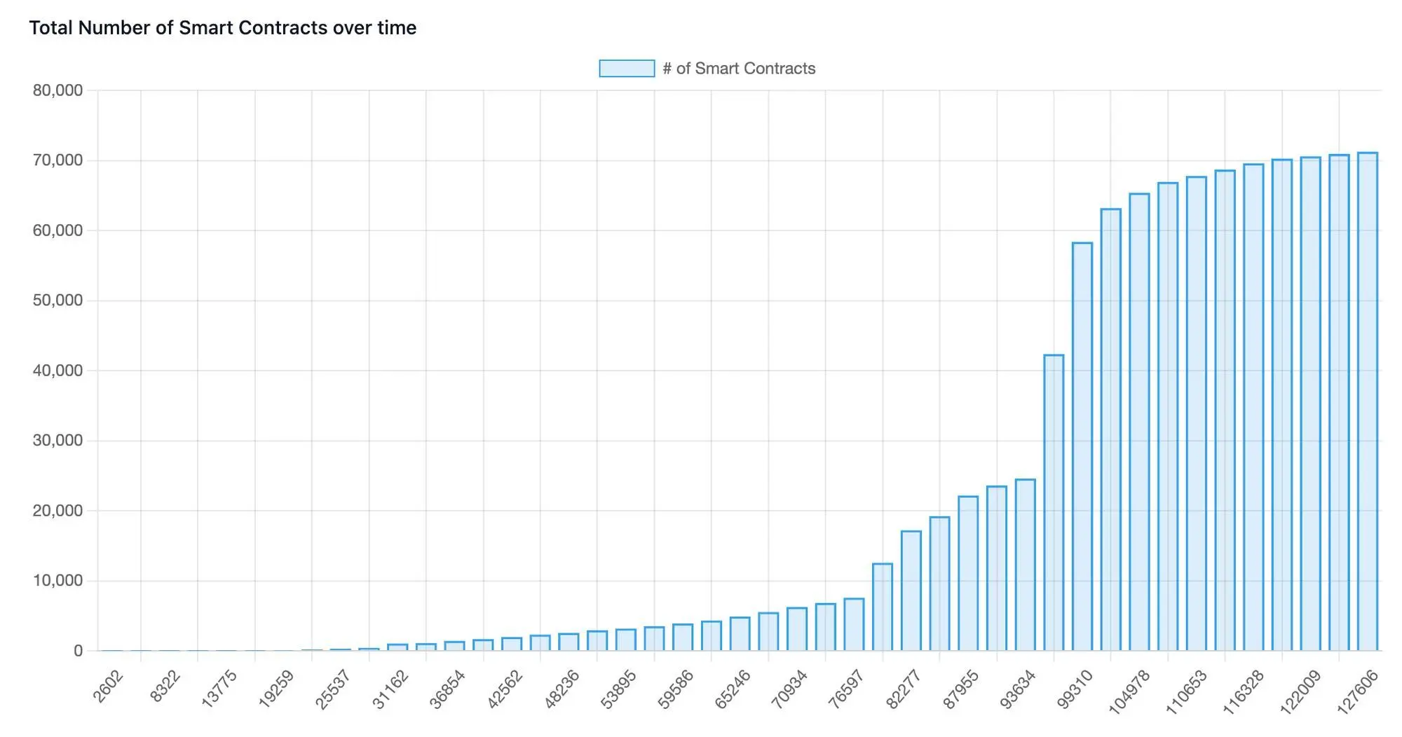 Stacks 生态目前 TVL 超过 1900 万美元,部署的智能合约数量超过 12 万,钱包数超过 76 万,生态项目比较完善。