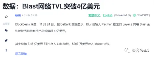 正文:近期,Blur 创始人推出的新项目 Blast 火爆全网,这个打着 Layer2 旗号的「资产生息」协议在 ETH 链上设置了一个充值地址,用户将资金存入 Blast 地址后,这些资金将被用于 ETH 网络原生质押、置入 MakerDAO 赚取利息等,所获利润将返回给用户。