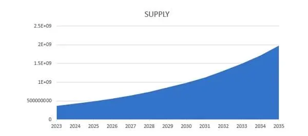 高收益率就意味着高通胀率,ATOM 一路从 2019 年的 2 亿枚左右一路增发至如今的 3.7 亿枚,按当前的市价也意味着超 15 亿美元的抛压。更可怖的是如果一直持续下去,2035 年甚至最高将通胀至 20 亿枚,相比今天 5 倍有余。