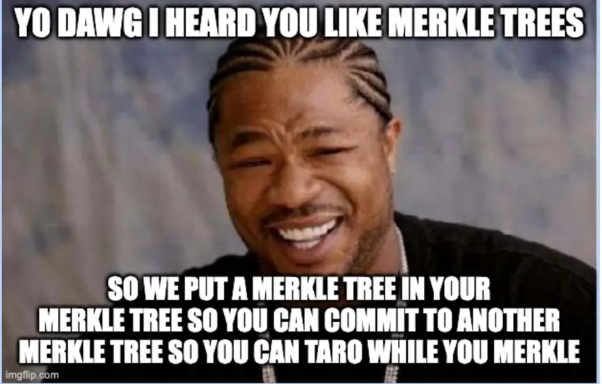 它的优势在于能够在不公开的情况下承诺价值。使用 Pedersen Hash 来构建 Merkle 树意味着你可以创建一个可以隐藏其值的隐私保护的 Merkle 树。这种结构在某些隐私保护协议中很有用,例如一些匿名加密货币项目。然而,它可能不适合 CSV 资产,这将在稍后与 Taproot Assets 的比较中提到。