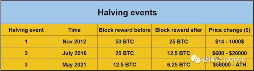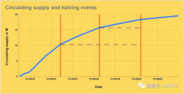 为了说明减半的影响,让我们来看看每次减半前后比特币的发行情况。在第一次减半之前,比特币的发行量超过了 1000 万枚。在第二次减半之前,比特币的发行量略高于 500 万枚,在第三次减半之前,比特币的发行量约为 250 万枚。