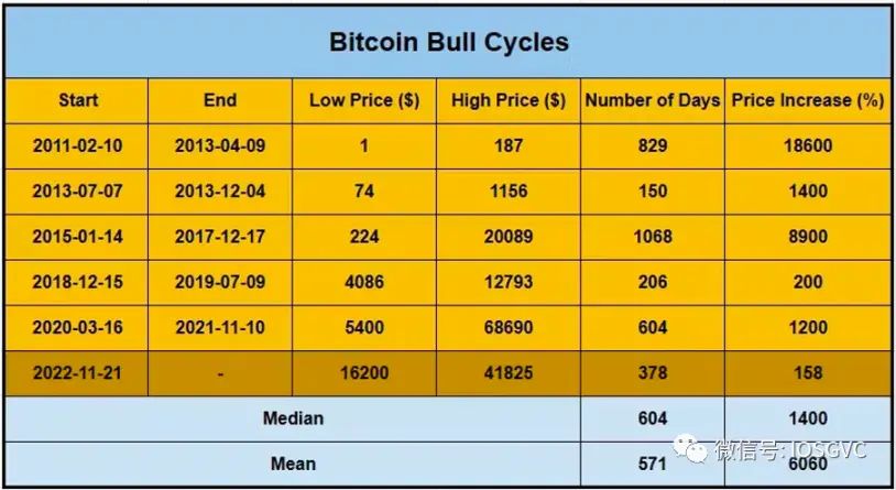 至于周期的持续时间,熊市周期的中位数持续时间为 354 天,平均持续时间为 293 天。最近的熊市周期持续时间为 354 天。对于牛市周期,中位数持续时间为 604 天,平均持续时间为 571 天。