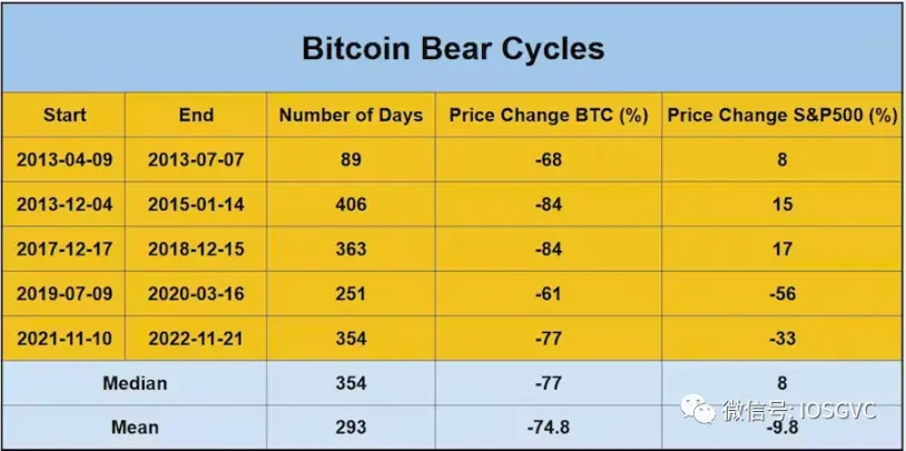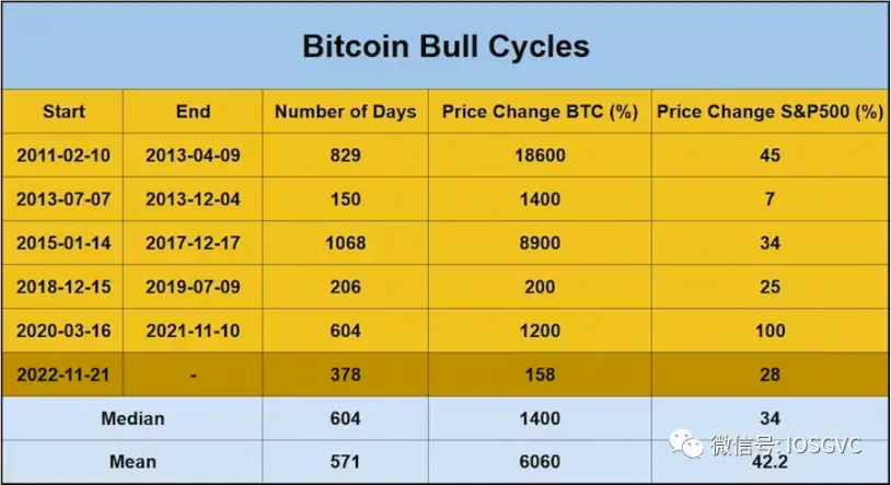 在下面的表格中,我们展示了每个历史牛市和熊市周期的统计数据。