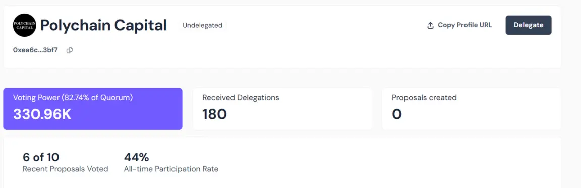 在治理上,Polychain Capital 的代币持有情况并没有垄断,但是在大量的委托下 Voting Power 基本上一家独大,甚至有点像传统 Web2.0 投资机构的「一票否决权」。