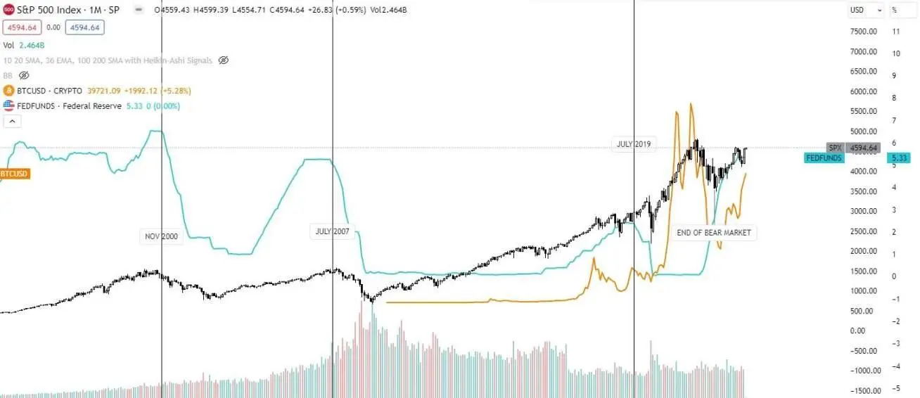 与传统金融市场相比,加密货币还没有真正存在那么长时间。当我们看到比特币如何在高利率下的表现时,我们只有一个时间点可以看 - 2019 年。